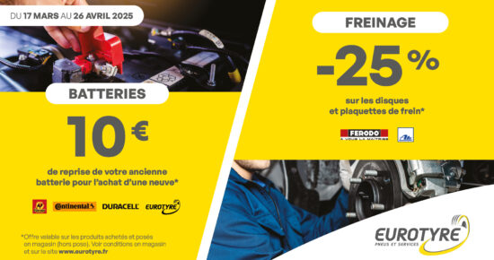 Du 17 mars au 26 avril 2025, profitez de notre offre exceptionnelle pour l’achat de pneus Continental : jusqu’à 150€ […]