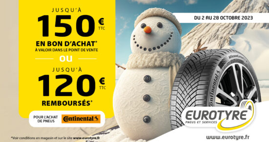 Promotions : Jusqu’à 150€ remboursés* pour l’achat de pneus Continental Du 18 mars au 27 avril 2024, retrouvez toutes nos promotions […]
